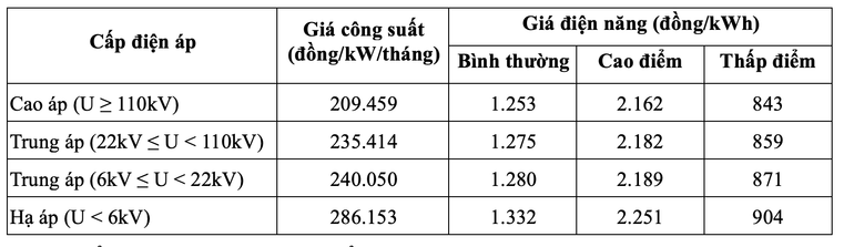 Biểu giá thử nghiệm giá bán điện hai thành phần.
