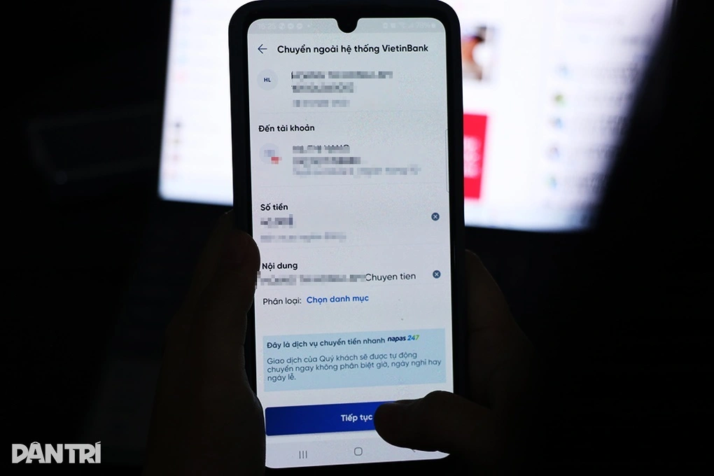Giao dịch chuyển tiền bằng app ngân hàng (Ảnh: Hoàng Lam).