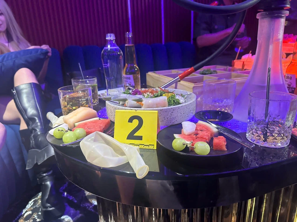 Tại nhiều phòng VIP, tổ công tác phát hiện nhân viên đang phục vụ khách hít bóng cười. Nhà chức trách thu giữ 27 bình kim loại loại 3kg chứa khí N₂O; hơn 10.000 quả bóng cao su đã và chưa sử dụng và nhiều máy móc có liên quan.