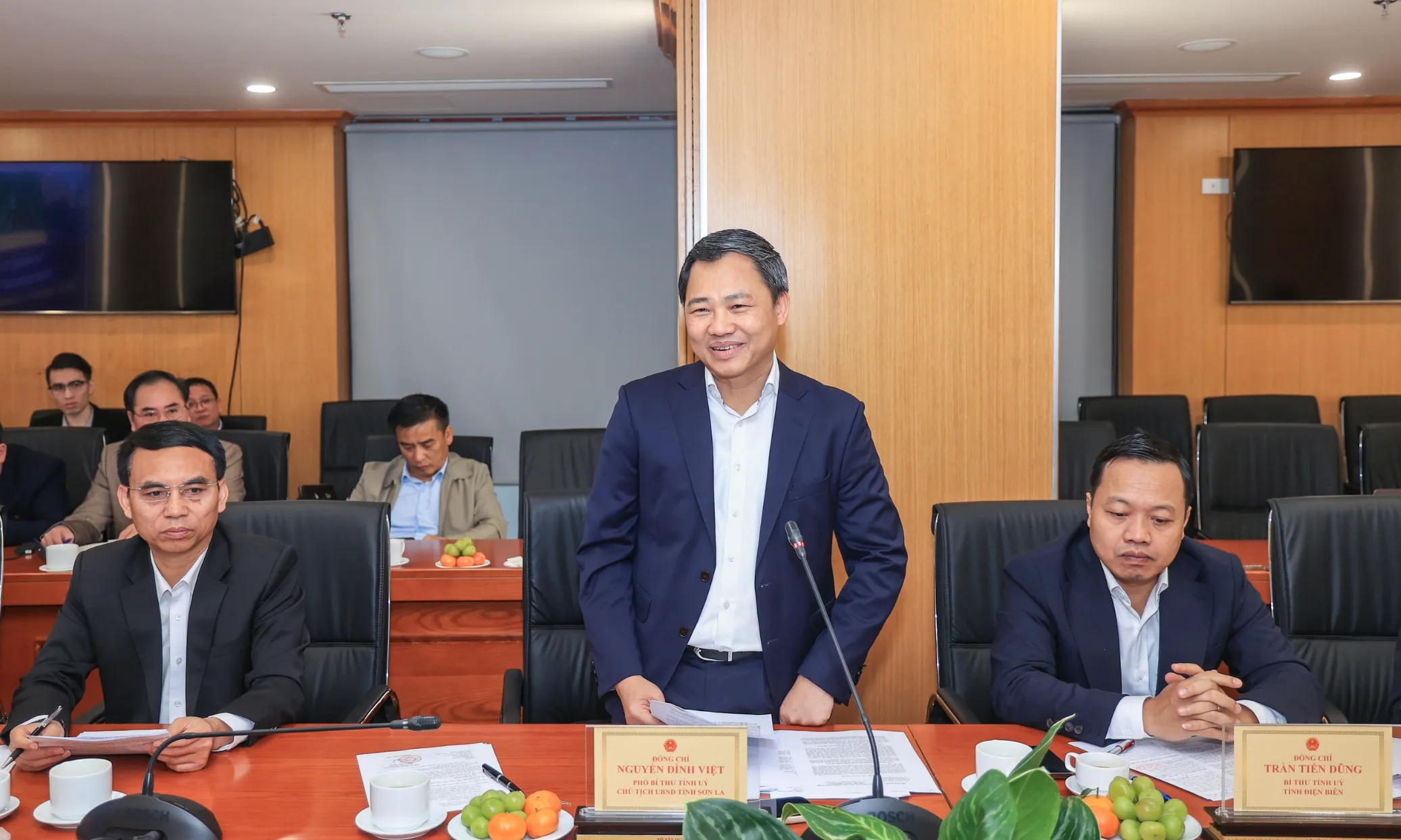 Ông Nguyễn Đình Việt, Chủ tịch UBND tỉnh Sơn La phát biểu tại cuộc họp.