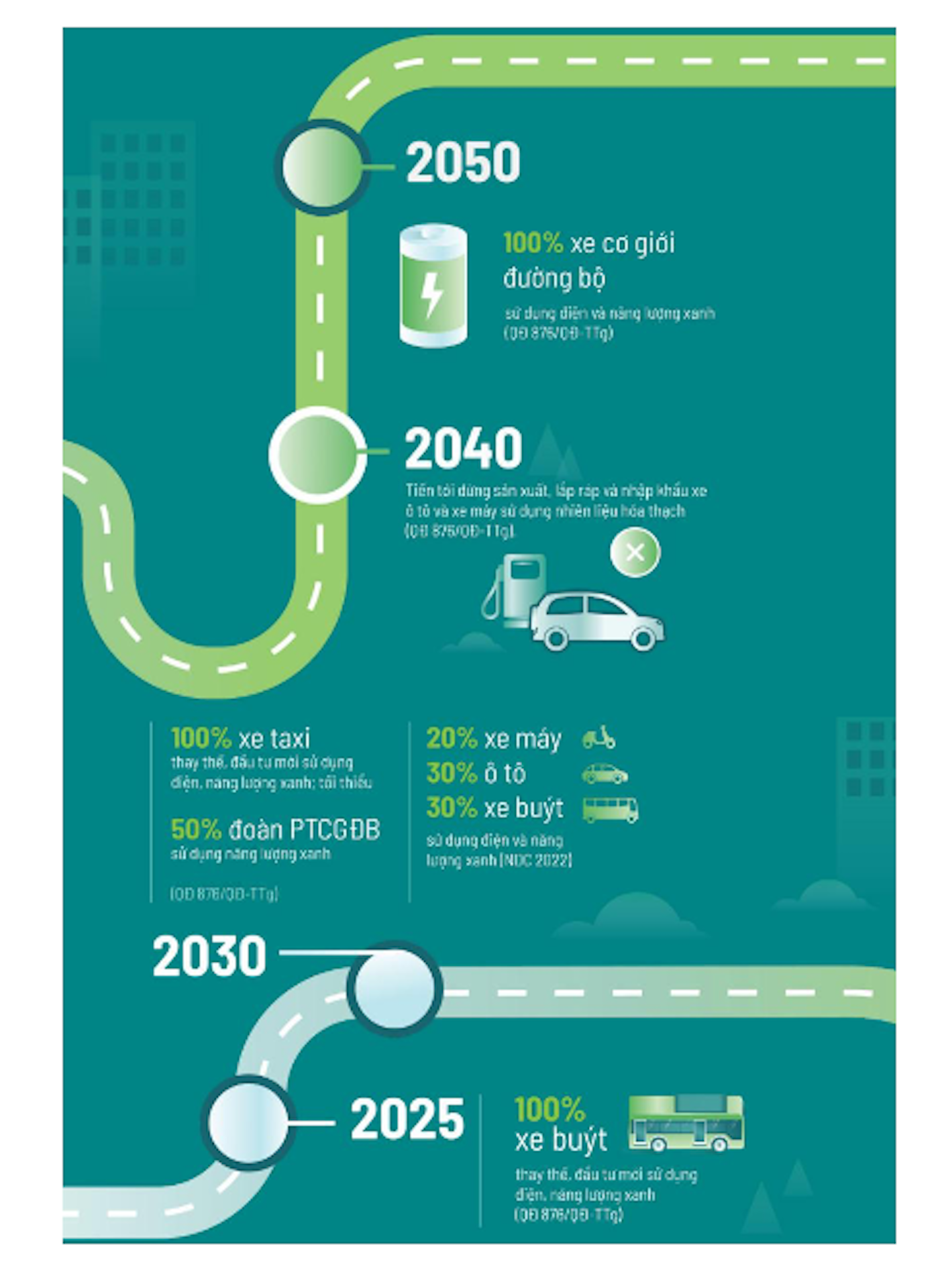 Lộ trình chuyển đổi năng lượng xanh ngành Giao thông vận tải. Nguồn: Bộ Xây dựng