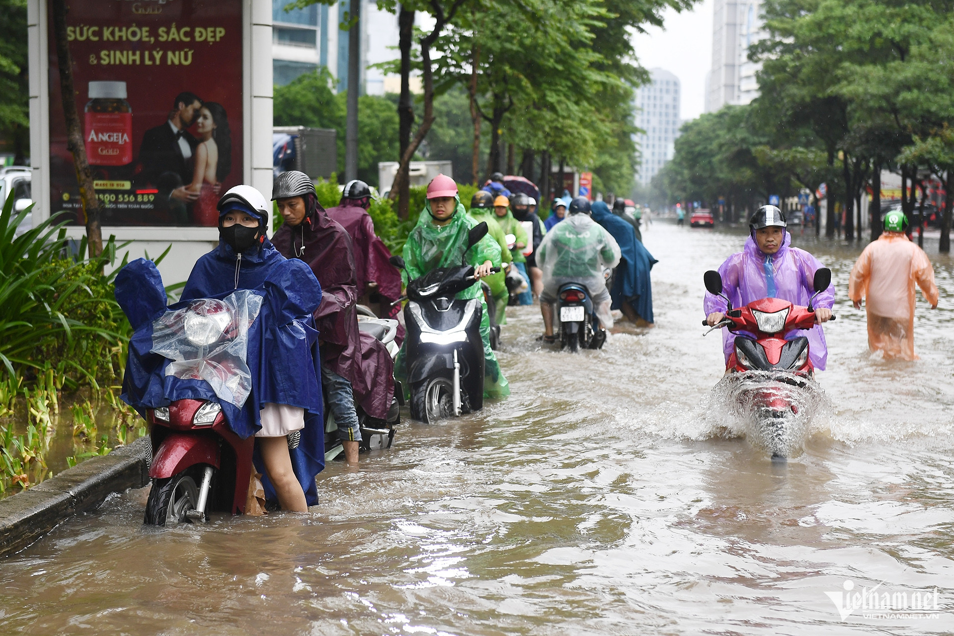 Cảnh tương tự tại phố Dương Đình Nghệ, dưới chân tòa nhà cao thứ nhì Việt Nam. Nơi đây được người dân gọi vui là "cảng nước sâu Keangnam" do cứ mưa lớn là biến thành "sông".