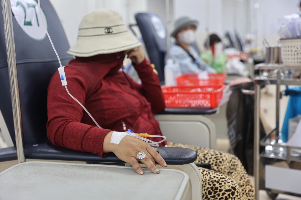 Bệnh nhân truyền thuốc điều trị ung thư tại Bệnh viện Ung Bướu TP HCM cơ sở 2. Ảnh: Quỳnh Trần