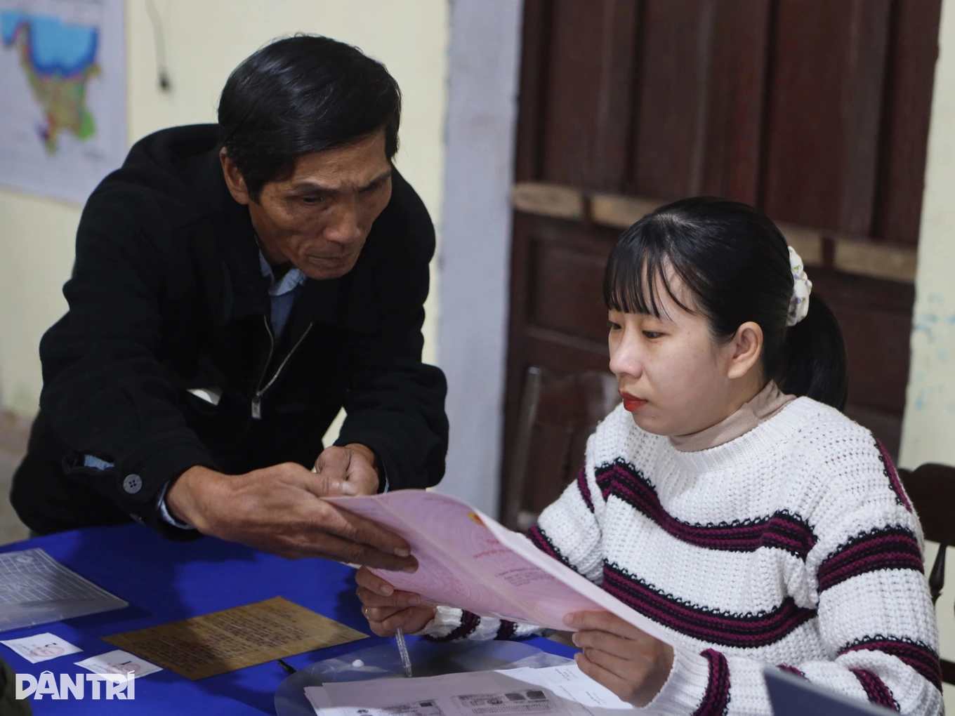Cán bộ UBND xã Phú Lộc không nghỉ cuối tuần, tham gia chiến dịch "Thứ bảy hồng" giúp dân giải quyết thủ tục hành chính về đất đai (Ảnh: Vi Thảo).