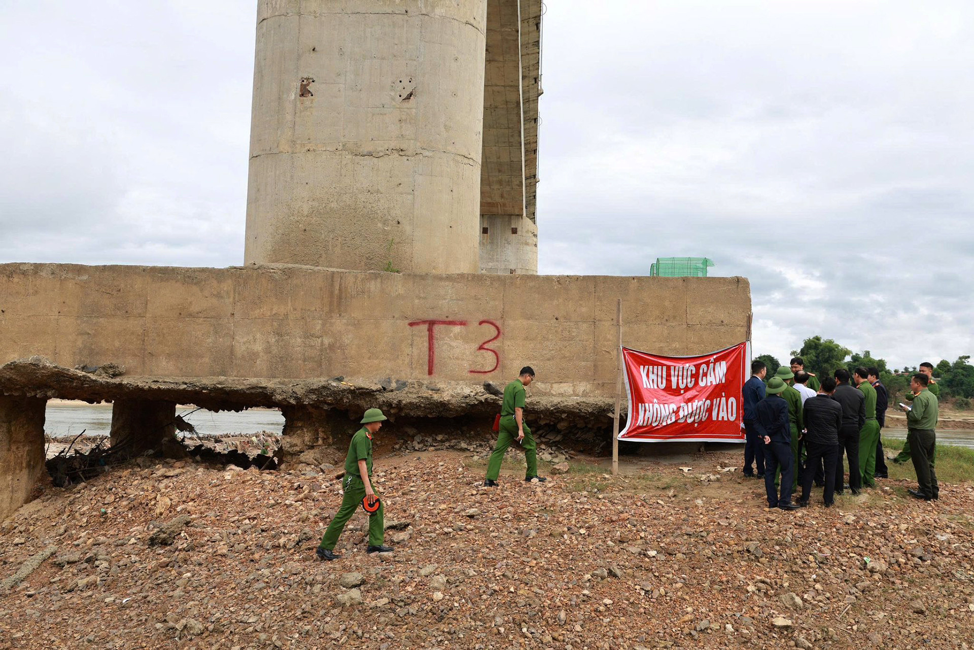 Cơ quan Cảnh sát điều tra phối hợp với các đơn vị liên quan khám nghiệm hiện trường tại trụ T3, cầu Sông Lô. Ảnh: CACC