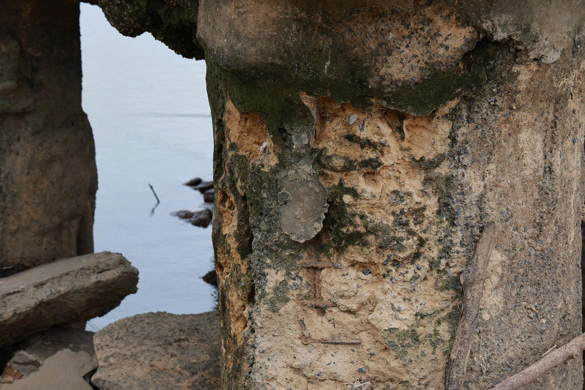 Một số móng cọc khác cũng có tình trạng bong tróc bê tông, lộ cốt thép rỉ sét. Ảnh: CACC