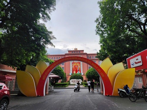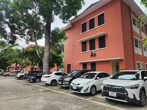 Khuôn viên Trường Đào tạo cán bộ Lê Hồng Phong để xe ô tô con, xe máy và xe đạp.
