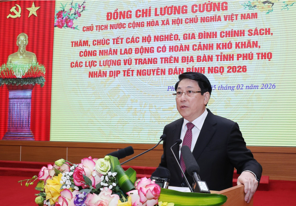 Nhân dịp đầu năm mới 2026 và trước thềm Tết Nguyên đán Bính Ngọ, sáng 5/2, Chủ tịch nước Lương Cường và đoàn công tác Trung ương đã tới thăm, động viên và chúc Tết Đảng bộ, chính quyền, các hộ nghèo, gia đình chính sách, công nhân lao động có hoàn cảnh khó khăn và cán bộ, chiến sĩ lực lượng vũ trang tỉnh Phú Thọ.