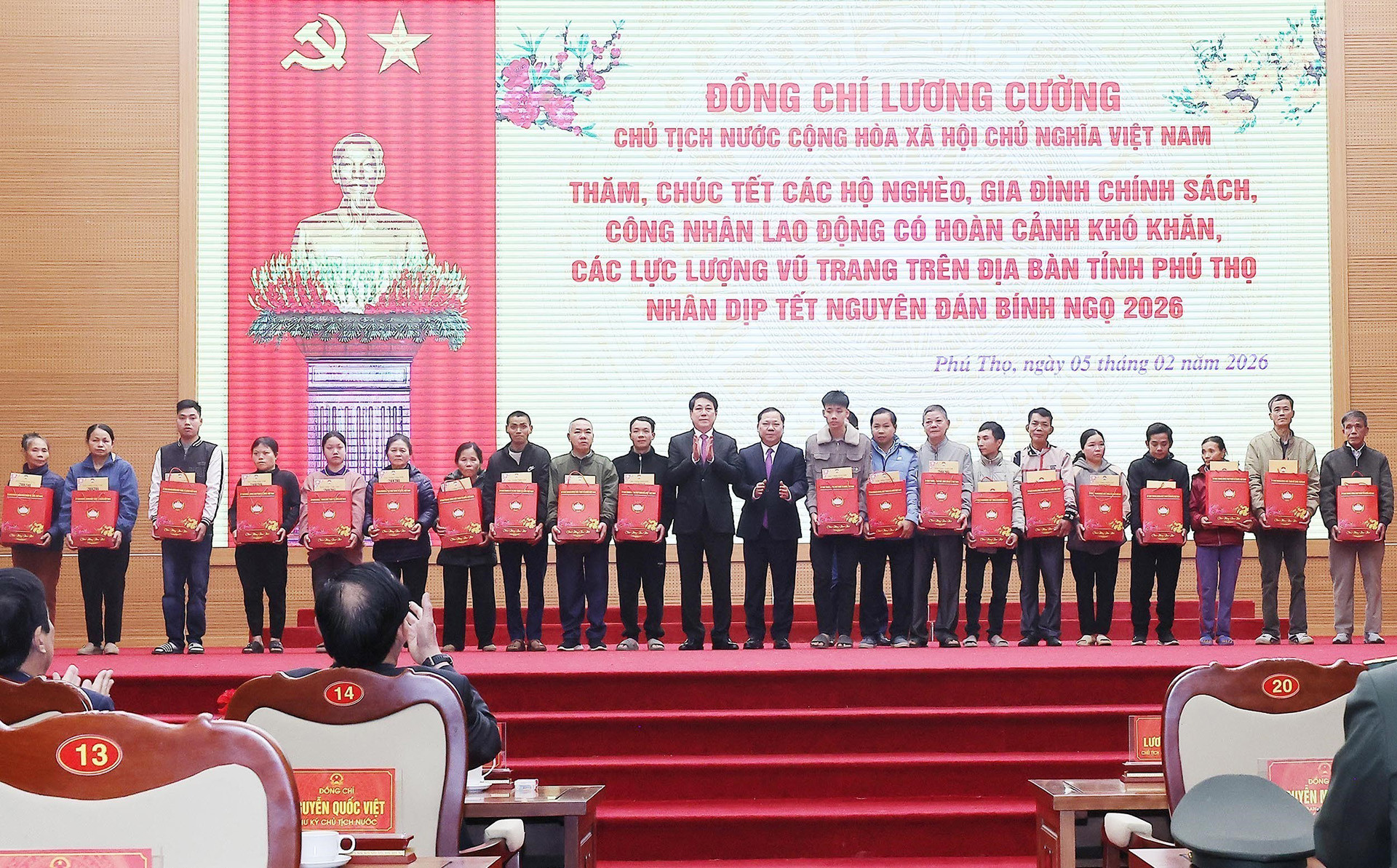Trước thềm Tết cổ truyền của dân tộc, Chủ tịch nước đề nghị cấp ủy, chính quyền các cấp tỉnh Phú Thọ tiếp tục quán triệt sâu sắc, tổ chức thực hiện nghiêm túc, chặt chẽ các chủ trương, chính sách của Đảng, Nhà nước về chăm lo đời sống nhân dân, tổ chức Tết Bính Ngọ năm 2026 bảo đảm vui tươi, lành mạnh, an toàn, tiết kiệm, mọi người, mọi nhà đều được vui Xuân, đón Tết.