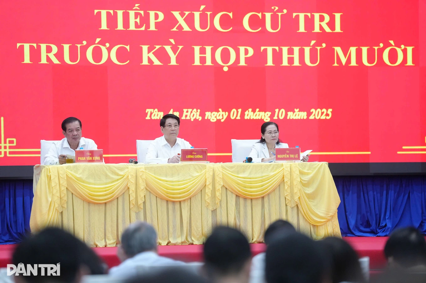 Chủ tịch nước Lương Cường cùng các đại biểu tiếp xúc cử tri trước kỳ họp thứ 10, Quốc hội khóa XV (Ảnh: Hữu Khoa).
