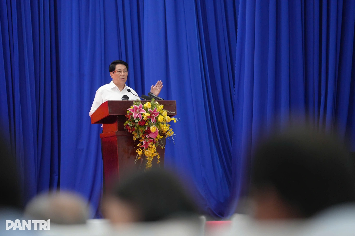 Chủ tịch nước Lương Cường lắng nghe ý kiến cử tri TPHCM tại buổi tiếp xúc cử tri (Ảnh: Hữu Khoa).