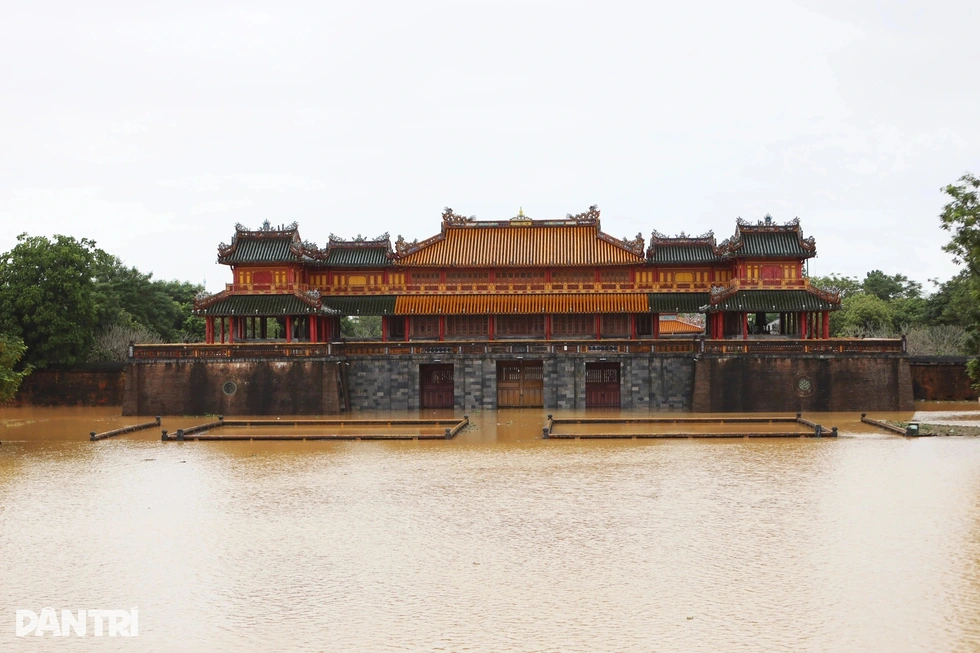 Kinh thành Huế bị nước lũ bủa vây (Ảnh: Vi Thảo).