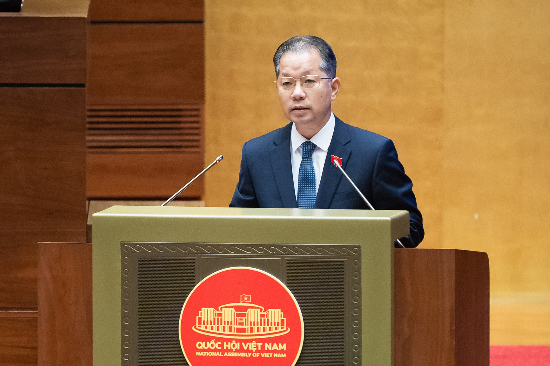Chủ nhiệm Ủy ban Pháp luật và Tư pháp Hoàng Thanh Tùng trình bày thẩm tra các báo cáo. Ảnh: Quốc hội