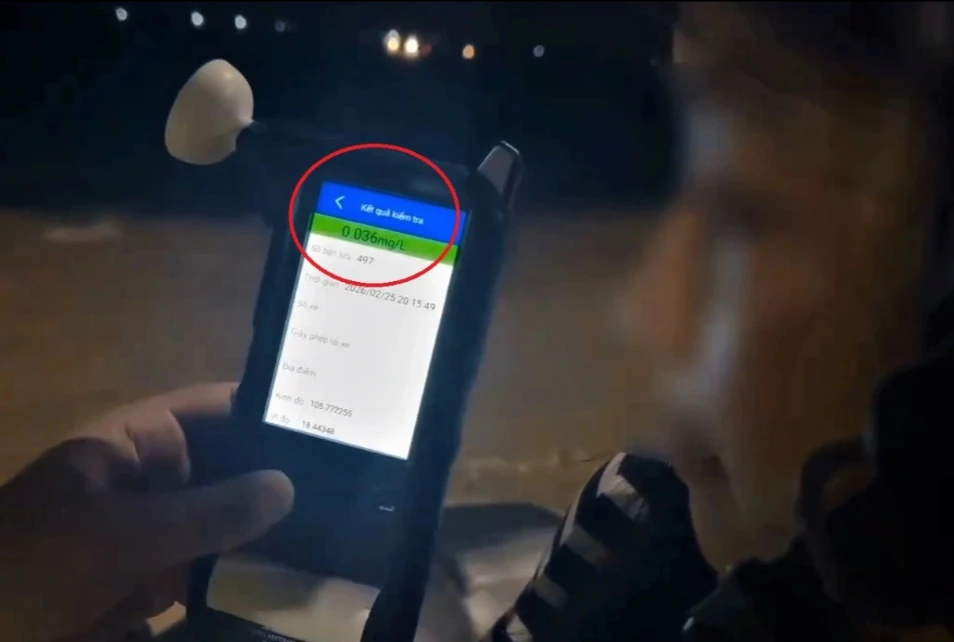 Kết quả kiểm tra cho thấy người này vi phạm ở mức 0,036mg/l khí thở