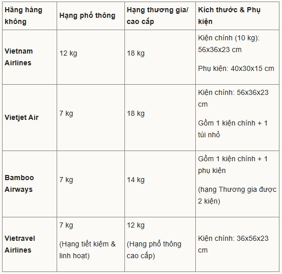 So sánh quy định Hành lý xách tay của các hãng bay Việt Nam