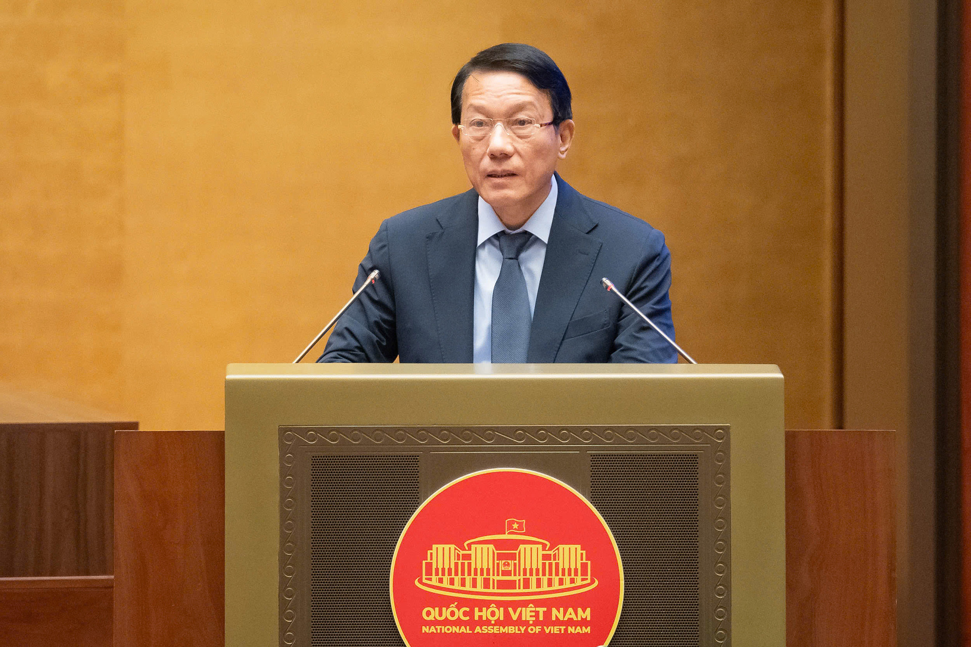 Đại tướng Lương Tam Quang, Bộ trưởng Công an trình bày báo cáo. Ảnh: Quốc hội