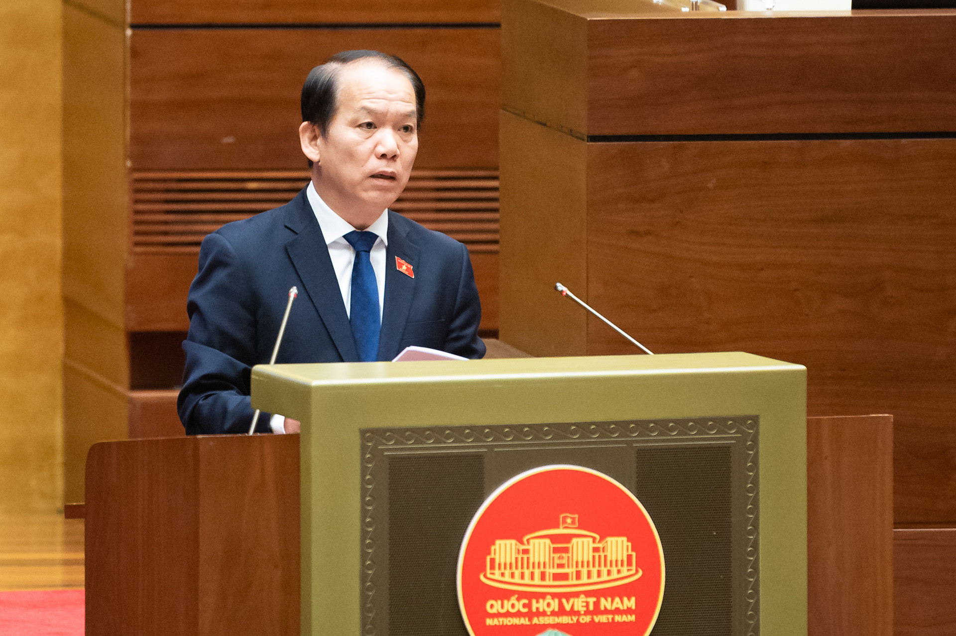 Chủ nhiệm Ủy ban Pháp luật và Tư pháp Hoàng Thanh Tùng trình bày thẩm tra. Ảnh: Quốc hội
