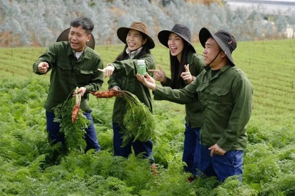 Quang Linh, Hằng "Du mục" và Thùy Tiên khi quay quảng cáo cho kẹo Kera (Ảnh: K.R.).
