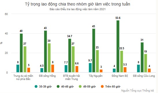 Ông đánh giá giờ làm việc bình thường vẫn ở mức cao, luật khuyến khích tuần làm việc 40 giờ nhưng thực tế phổ biến vẫn 48 giờ, đặc biệt trong ngành thâm dụng lao động. Khảo sát một số khu công nghiệp cho thấy lao động chấp nhận làm việc nhiều giờ vì thu nhập song giảm sức khỏe rõ rệt và ít thời gian cho gia đình.