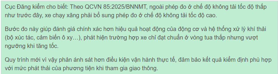Tuy nhiên, một đăng kiểm viên cho rằng, về lý thuyết, đo khí thải ở tốc độ vòng quay tối đa theo thiết kế động cơ là đúng quy định. Nhưng trong thực tế sử dụng, người dân hiếm khi vận hành xe ở trạng thái này nên tâm lý “xót xe” là dễ hiểu.