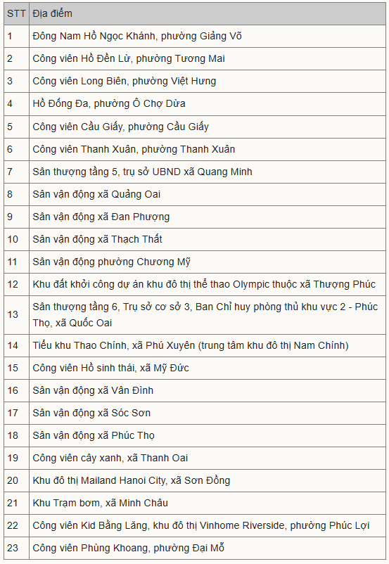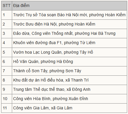 Các phường Hoàn Kiếm, Tây Hồ và Hai Bà Trưng có nhiệm vụ hỗ trợ lực lượng liên quan bố trí xuồng, mặt bằng để triển khai pháo hoa hỏa thuật trên mặt Hồ Hoàn Kiếm, Hồ Tây và Hồ Công viên Thống Nhất.
