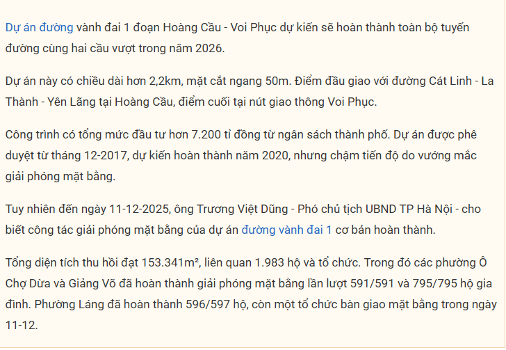 - Nguyễn Chí Thanh → Chùa Láng→ Huỳnh Thúc Kháng kéo dài→ Voi Phục→ La Thành.