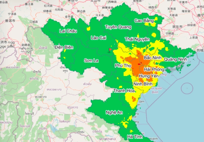 Mức độ ô nhiễm tại miền Bắc sáng nay. Ảnh: Trường Đại học Công nghệ, Đại học Quốc Gia Hà Nội