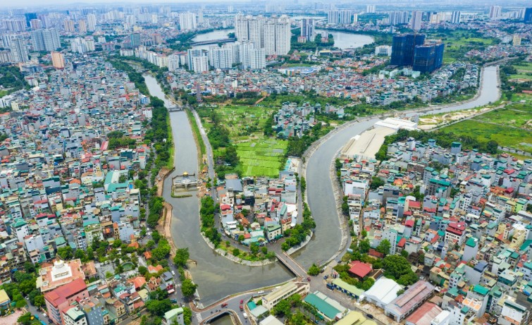 Sông Tô Lịch nhìn từ trên cao. Ảnh: Thạch Thảo