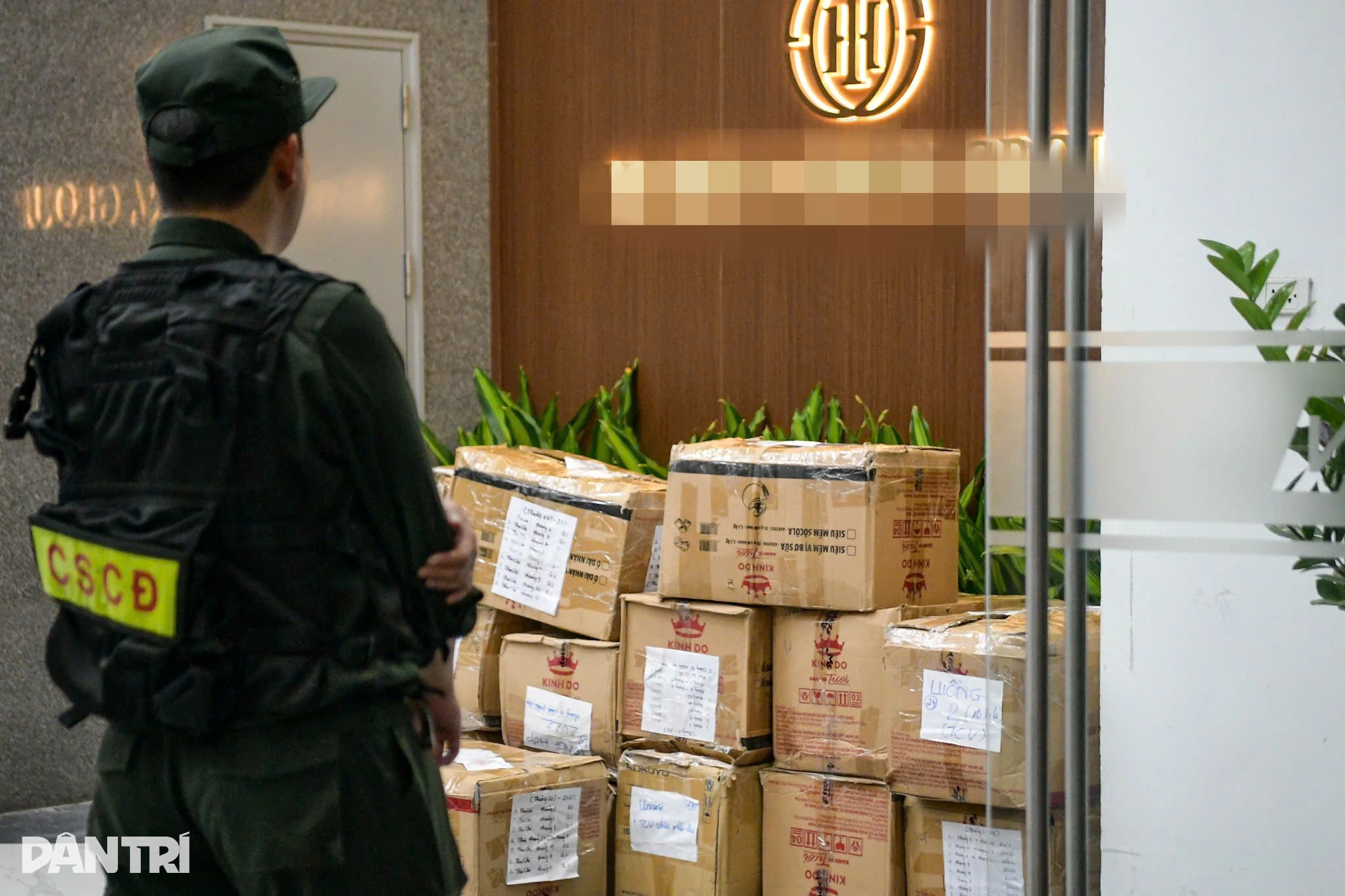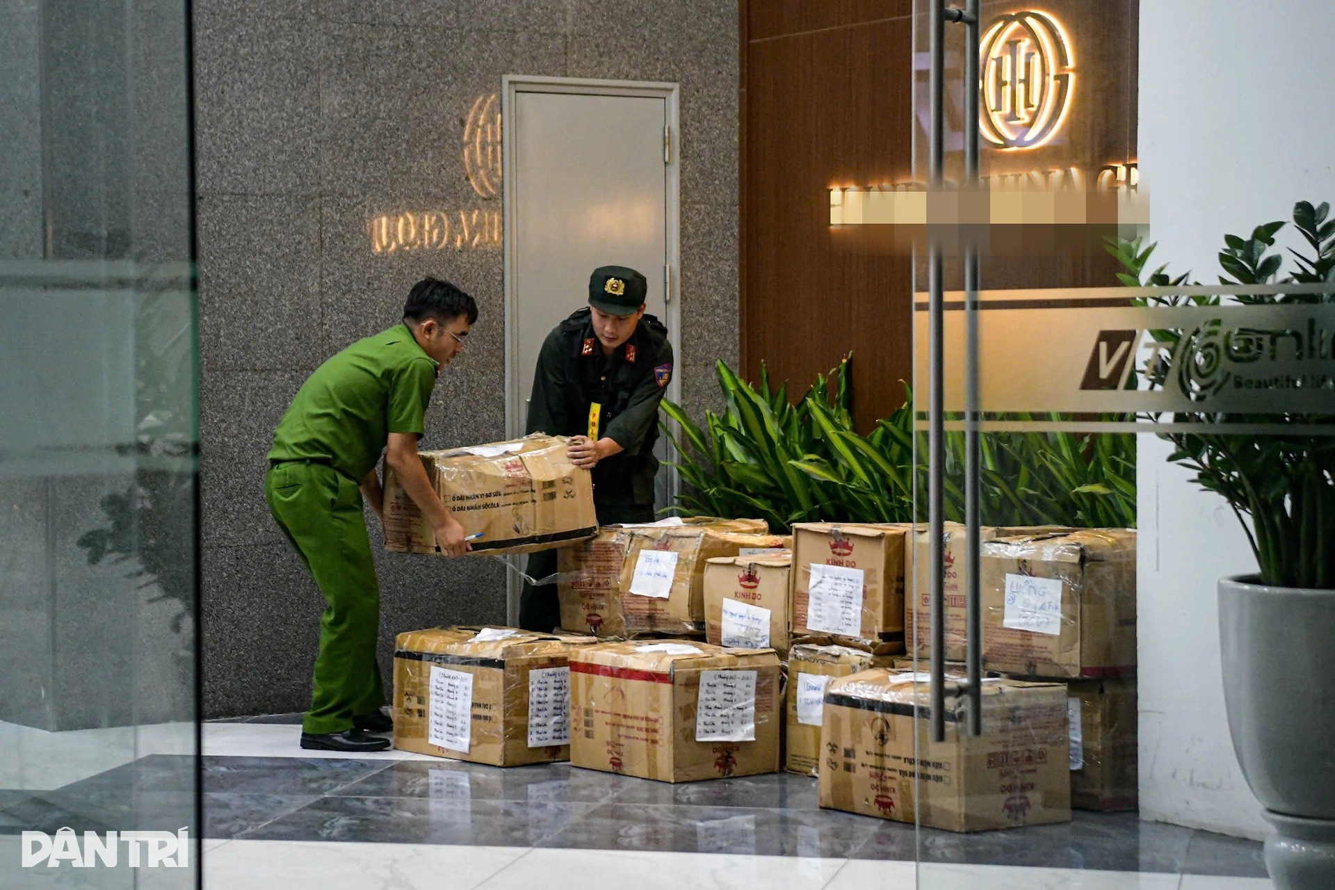 Khoảng 19h45 ngày 7/10, hàng chục thùng tài liệu được vận chuyển ra khỏi tòa nhà 18 Tam Trinh (Hà Nội) dưới sự giám sát của lực lượng công an. Tòa nhà này là nơi đặt trụ sở công ty của Shark Bình.