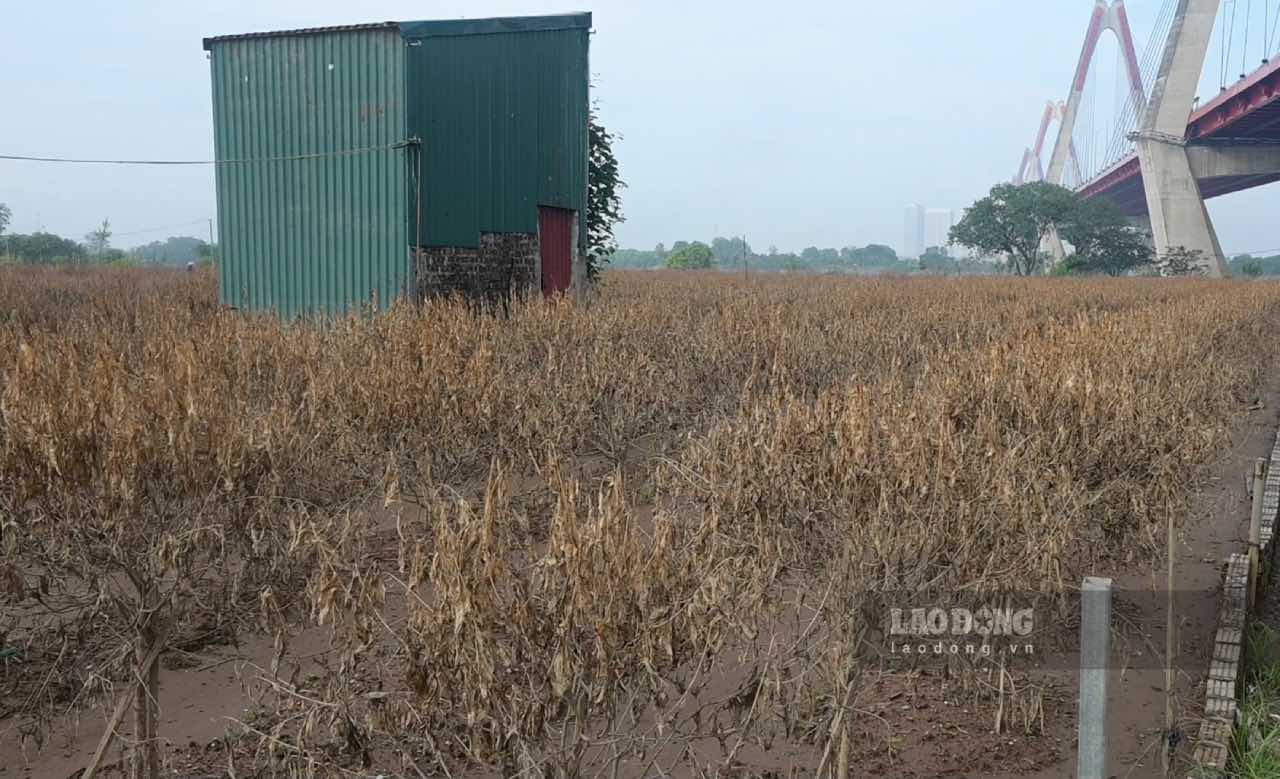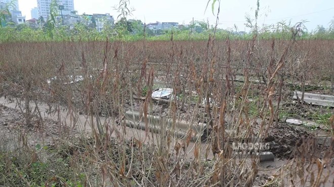Những ngày này, khi người Hà Nội bắt đầu cảm nhận chút se lạnh của mùa thu thì dưới chân cầu Nhật Tân, không khí lại nặng trĩu hơn bao giờ hết. Cánh đồng đào vốn xanh mướt, ngay ngắn từng luống nay chỉ còn lại những gốc cây héo rũ.