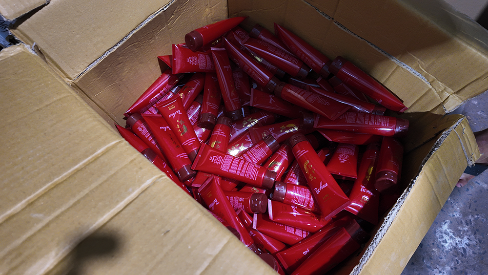 Sản xuất mỹ phẩm giả các thương hiệu nổi tiếng với dụng cụ sơ sài. Ảnh: CACC