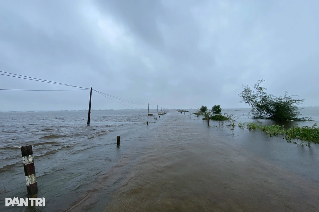 Tuyến đường độc đạo dẫn vào các thôn Lâm Lý, Phước Lý, Mai Dương, xã Quảng Điền mênh mông nước (Ảnh: Vi Thảo).