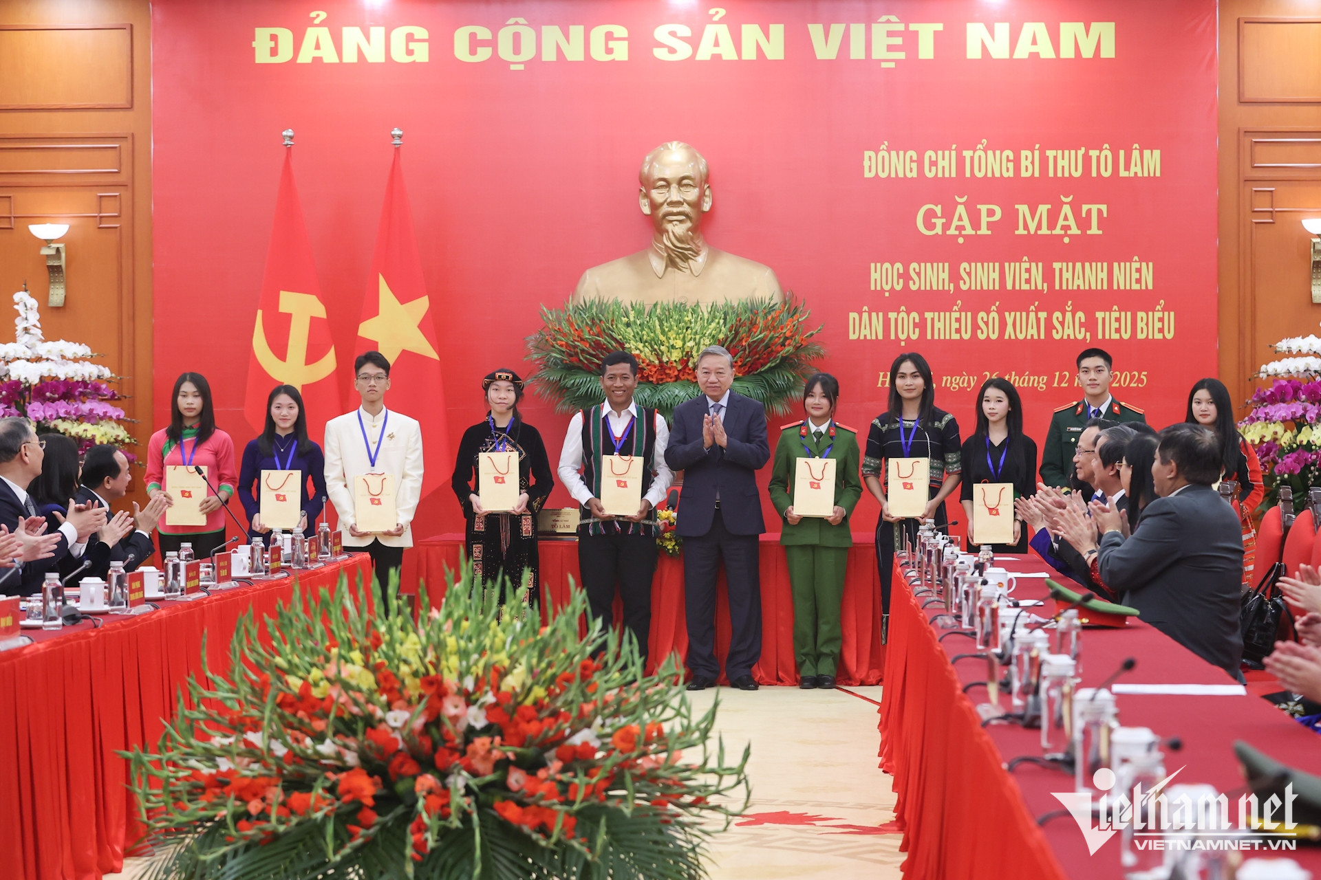 Ngày 26/12/2025, tại trụ sở Trung ương Đảng, Tổng Bí thư Tô Lâm gặp mặt học sinh, sinh viên, thanh niên dân tộc thiểu số xuất sắc, tiêu biểu năm 2025, đồng thời làm việc với Đảng ủy Bộ Dân tộc và Tôn giáo, các ban, bộ, ngành Trung ương về công tác giáo dục, đào tạo phát triển nguồn nhân lực ở vùng đồng bào dân tộc thiểu số, miền núi, biên giới.