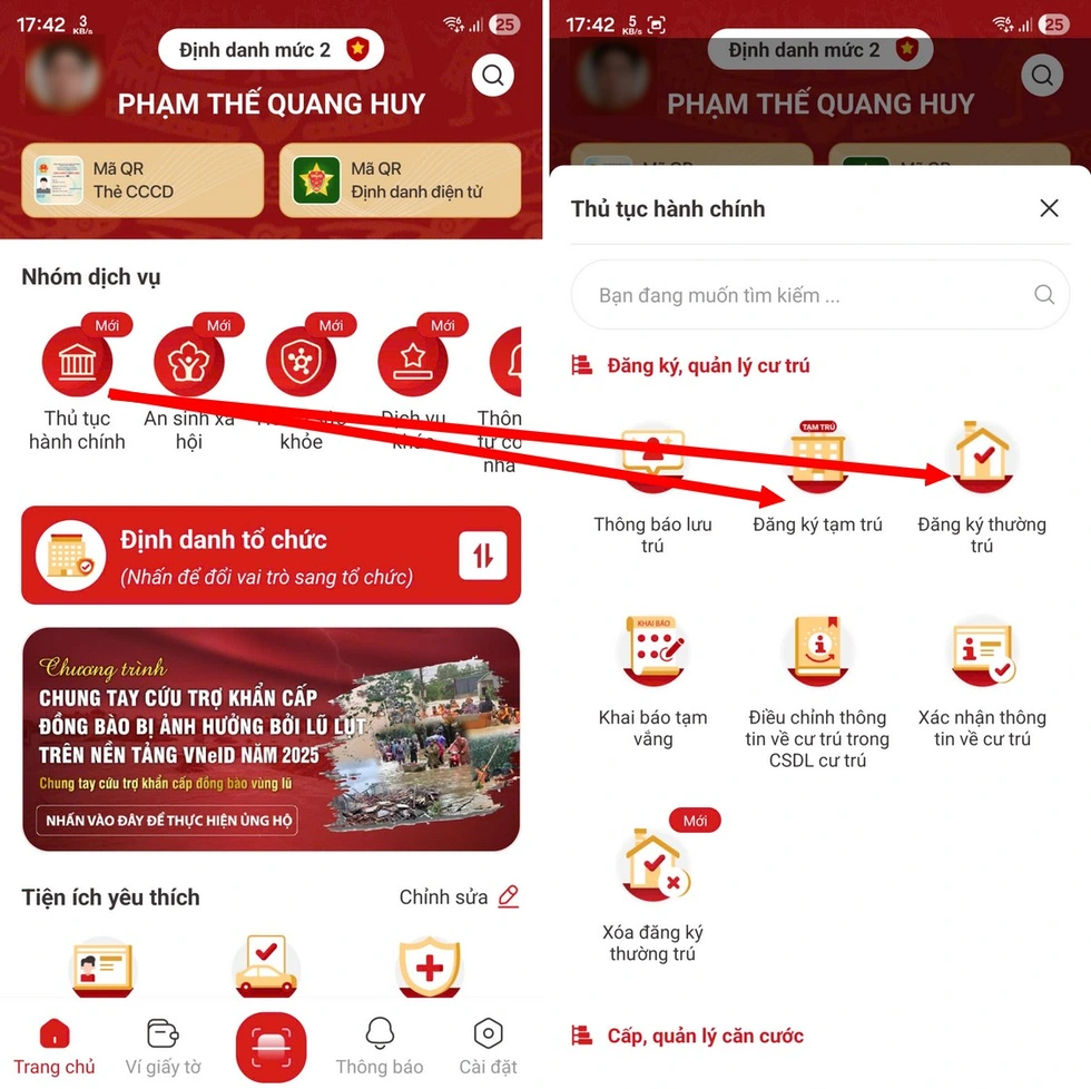 Hướng dẫn đăng ký thường trú, tạm trú trên ứng dụng VNeID để xuất trình thông tin khi được yêu cầu