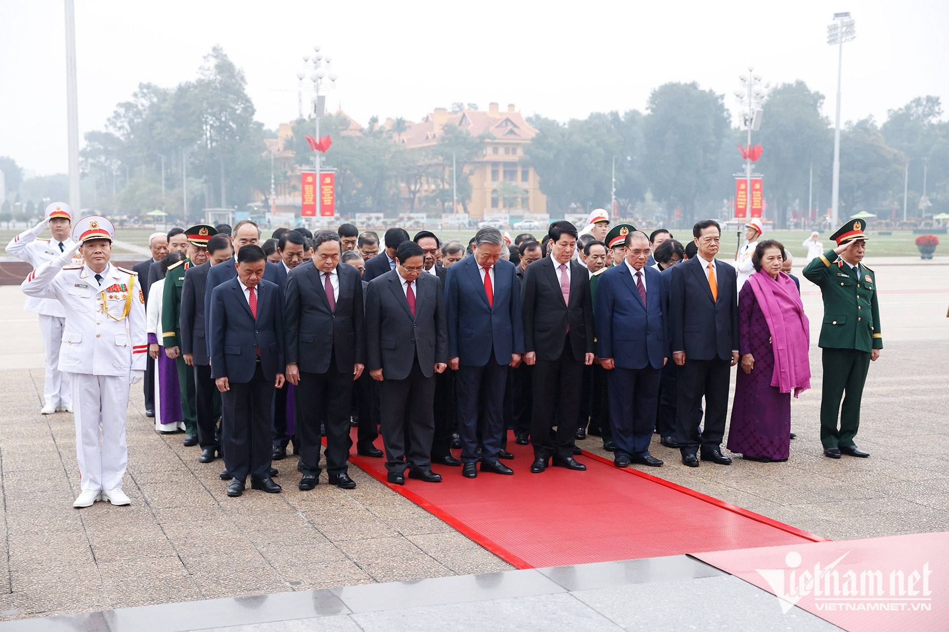 Sáng nay nhân kỷ niệm 96 năm Ngày thành lập Đảng Cộng sản Việt Nam (3/2/1930 - 3/2/2026) và chuẩn bị đón Tết Nguyên đán Bính Ngọ, lãnh đạo, nguyên lãnh đạo Đảng, Nhà nước, MTTQ Việt Nam đặt vòng hoa và vào Lăng viếng Chủ tịch Hồ Chí Minh.