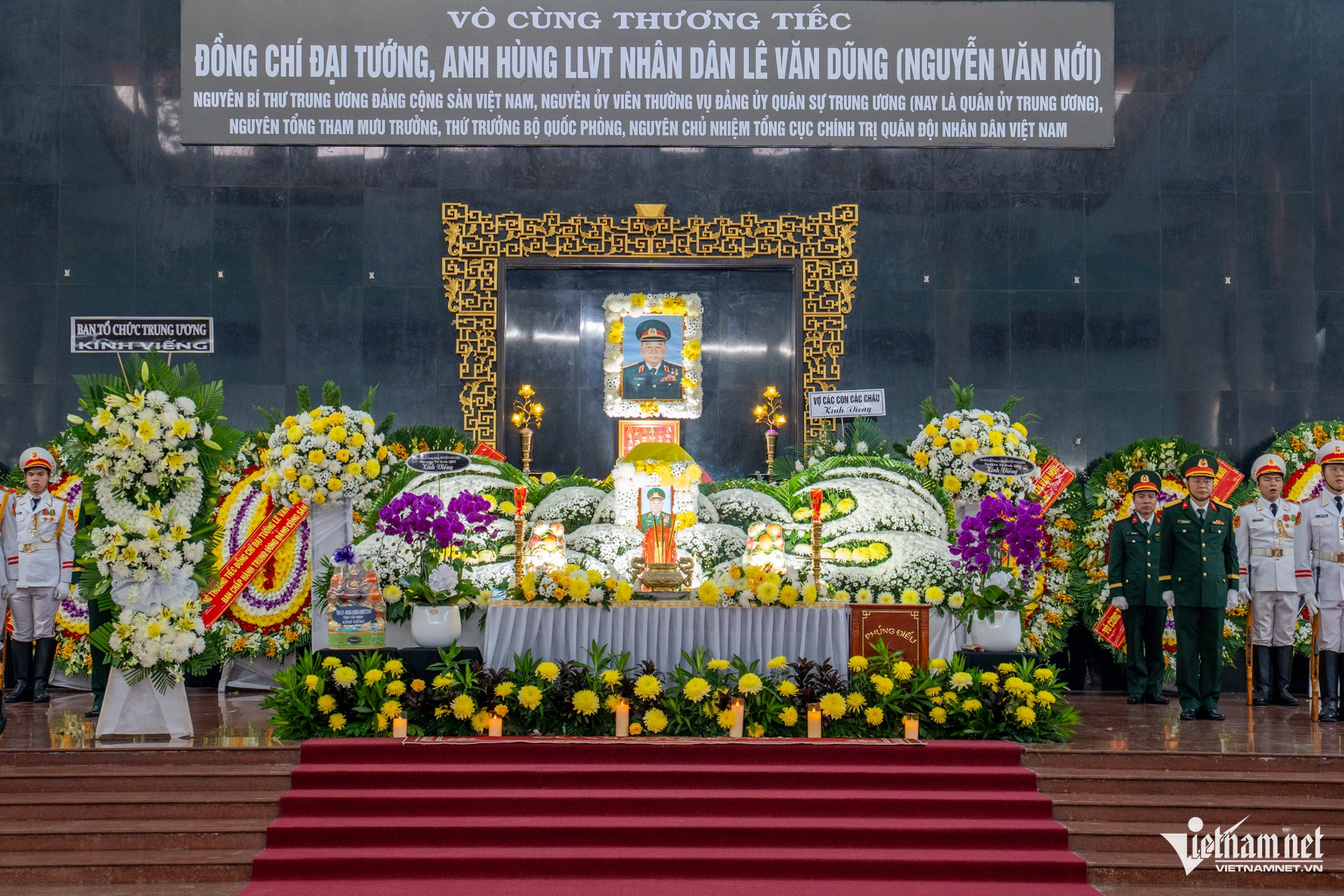 Sáng nay, tại nhà tang lễ quốc gia phía Nam (TPHCM), Ban Chấp hành Trung ương Đảng Cộng sản Việt Nam, Quốc hội, Chủ tịch nước, Chính phủ, Ủy ban Trung ương MTTQ Việt Nam tổ chức trọng thể lễ viếng, lễ truy điệu Đại tướng Lê Văn Dũng - Anh hùng LLVT nhân dân, nguyên Bí thư Trung ương Đảng, nguyên Ủy viên Thường vụ Đảng ủy Quân sự Trung ương (nay là Quân ủy Trung ương), nguyên Tổng Tham mưu trưởng, nguyên Thứ trưởng Bộ Quốc phòng, nguyên Chủ nhiệm Tổng cục Chính trị, theo nghi thức lễ tang cấp Nhà nước.