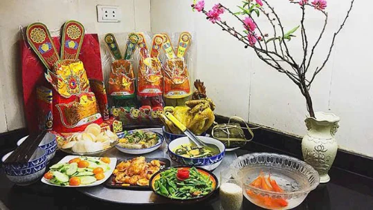 Có nén hương, cùng hoa thơm, quả ngọt, bánh ngon, kẹo dẻo, trầu cau tươi, thuốc lá sang thơm… mâm cơm đạm bạc, lòng thành kính dâng lên Trời, Phật, các cung các cõi linh thiêng. Ông Công, ông Táo chủ thần quân, cũng xin các ngài cho gia tiên tiền tổ chúng con, về cùng dự cho được thân mật được linh thiêng.