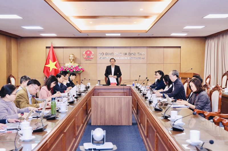 Bộ GDĐT tổ chức Hội nghị giao ban trực tuyến với các địa phương về sắp xếp, sáp nhập trường học. Ảnh: MOET