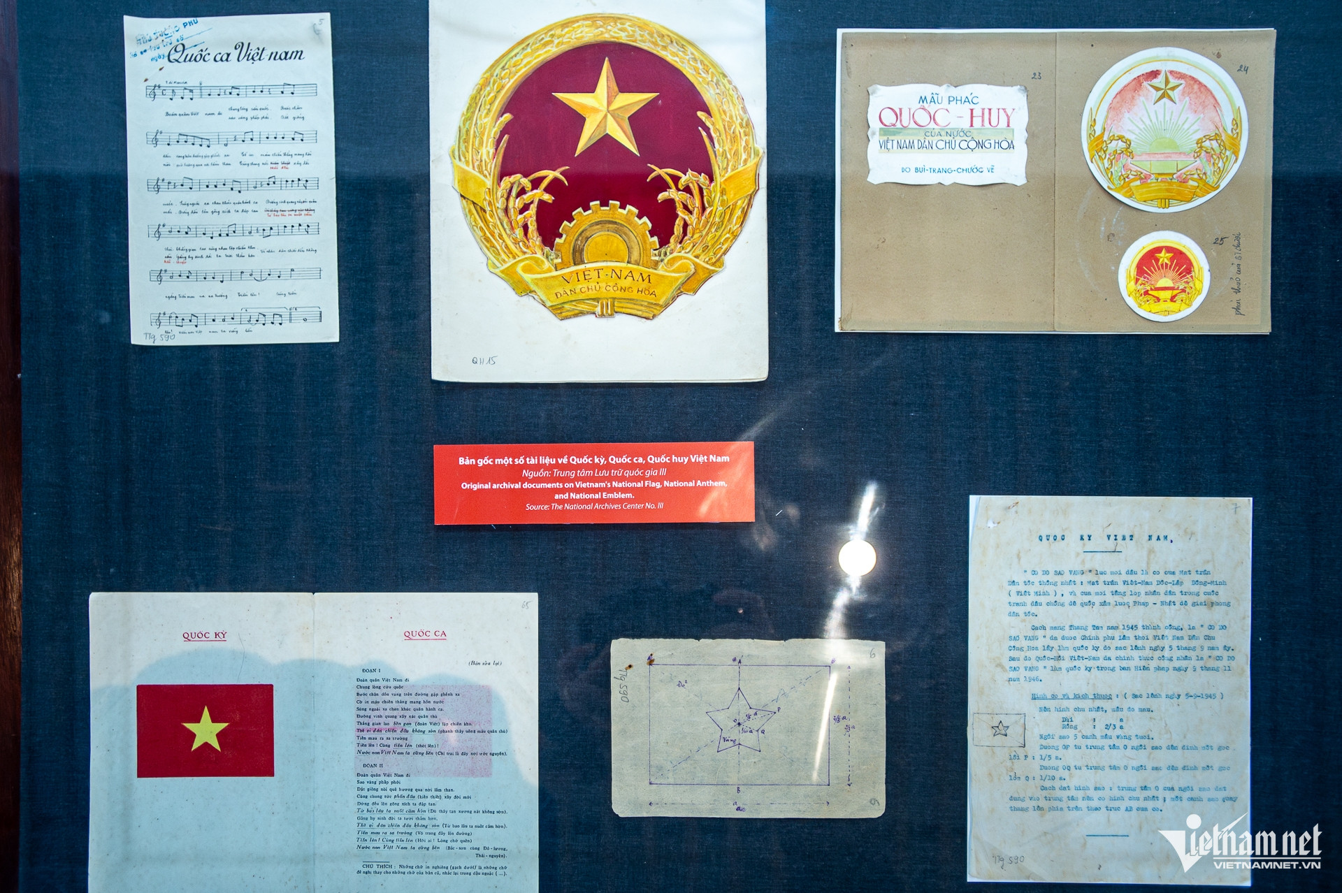 Nhiều tài liệu lưu trữ gốc tiêu biểu liên quan đến Quốc kỳ, Quốc ca, Quốc huy và Hiến pháp được trưng bày, qua đó làm nổi bật các biểu tượng thiêng liêng của đất nước, thể hiện sâu sắc tinh thần độc lập, tự do của dân tộc Việt Nam.