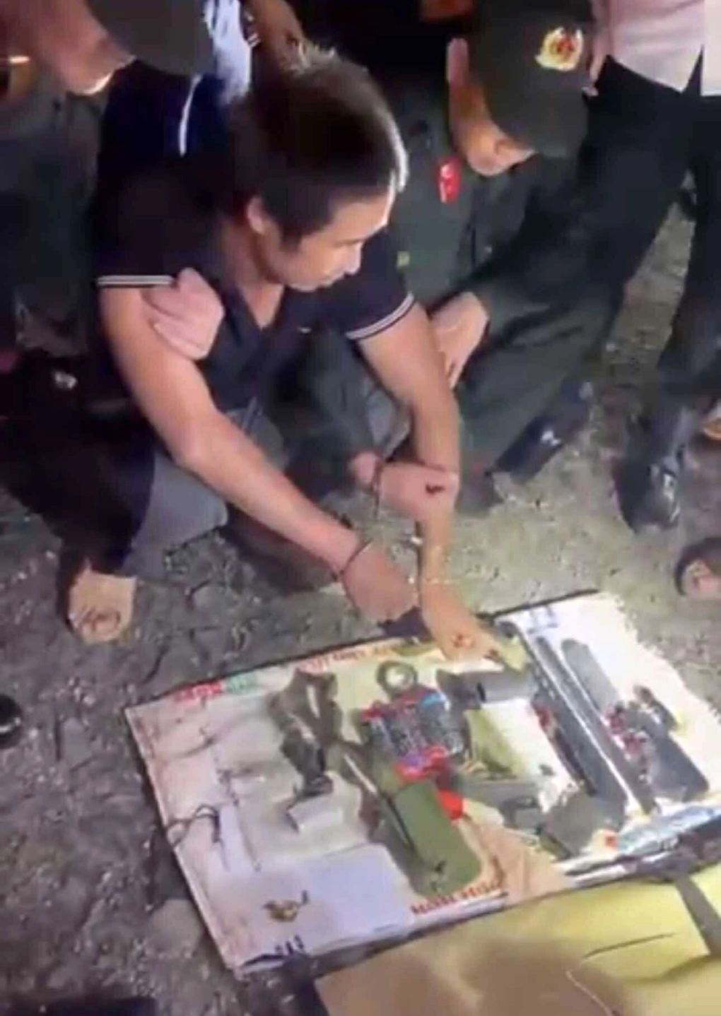 Công an Đồng Nai cho biết, 16h30 ngày 5/10, hàng chục trinh sát đã vây ráp, bắt Tùng, 33 tuổi, khi đang lẩn trốn ở khu rẫy ở phường Phước Bình (thị xã Phước Long, Bình Phước cũ). Tang vật thu giữ gồm nhiều bộ phận của súng, pháo khói, băng keo đen, giảm thanh, ống ngắm...