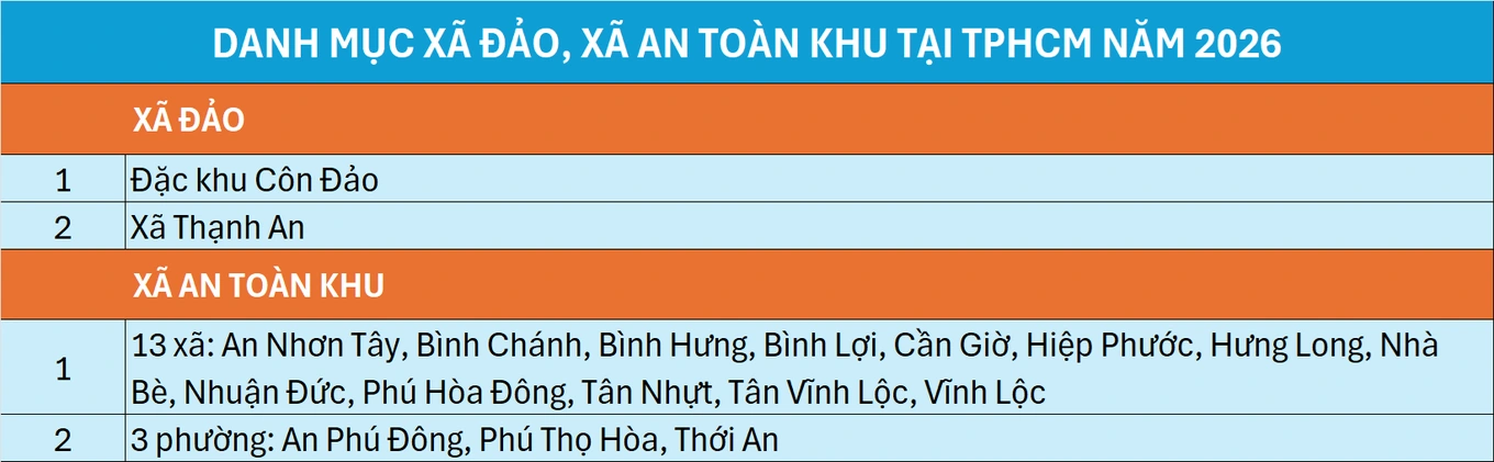Theo quyết định của UBND TPHCM, các xã đảo, xã an toàn khu nêu trên được thực hiện chính sách ưu đãi theo quy định.