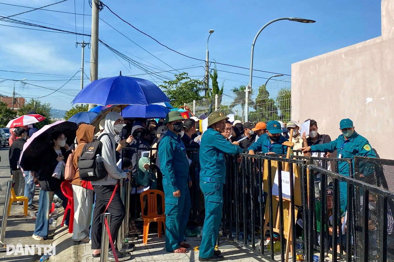 Dòng người đổ về khu vực dự án, kéo dài ra tận đường. Nhiều người mang theo đồ ăn, nước uống, thậm chí ngủ qua đêm để giữ chỗ.