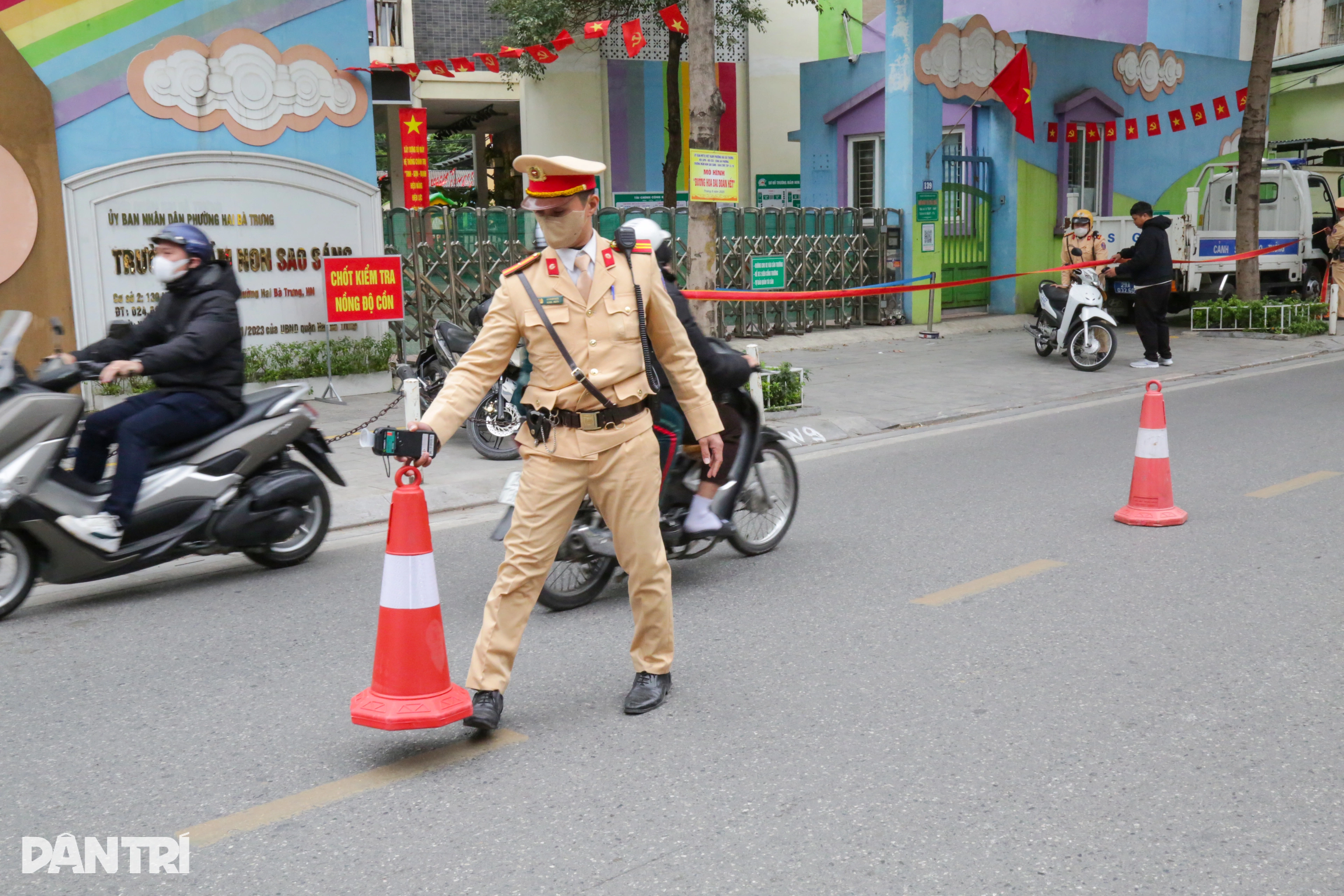 Ghi nhận của phóng viên Dân trí chiều 6/1 tại đường Phạm Đình Chiểu (phường Hai Bà Trưng, TP Hà Nội), tổ công tác gồm 6 chiến sĩ CSGT thuộc Đội CSGT đường bộ số 4 (Phòng CSGT Hà Nội) làm nhiệm vụ kiểm soát nồng độ cồn với nhiều tài xế ô tô, xe máy...