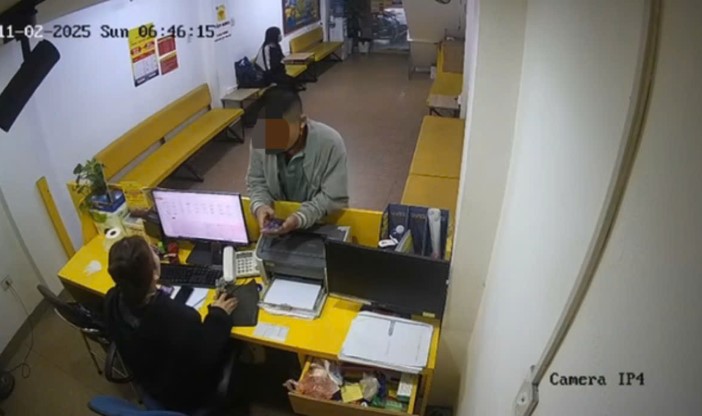 Nữ sinh M. được một người đàn ông mua vé xe. Ảnh: Người nhà cung cấp