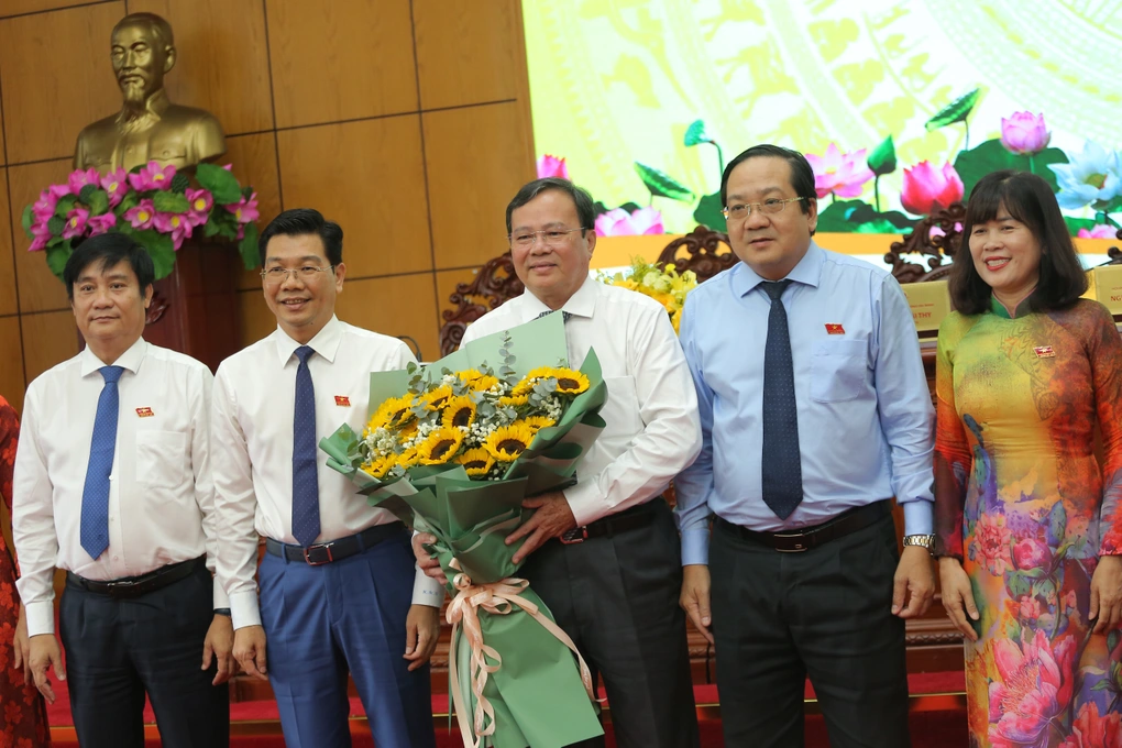 Ông Lê Văn Hẳn nhận hoa chúc mừng từ lãnh đạo HĐND tỉnh Tây Ninh (Ảnh: An Huy).