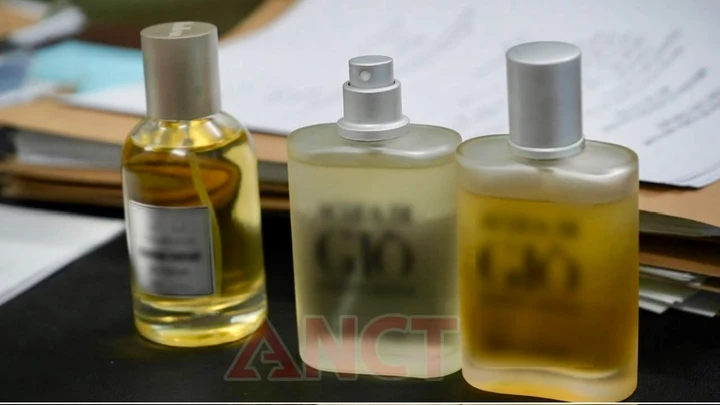 Tại hiện trường, lực lượng chức năng tạm giữ khối lượng lớn tang vật gồm hàng nghìn chai, hộp nước hoa thành phẩm mang các nhãn hiệu nổi tiếng như Chanel, Dior, Acqua Di Gio, Le Labo... Cơ quan chức năng cũng thu giữ hơn 130 lít nước hoa đã pha chế; 646 kg vỏ hộp in nhãn hiệu; hơn 12.400 vỏ chai, trên 18.000 nhãn mác các loại cùng 4 máy chuyên dụng phục vụ sản xuất.