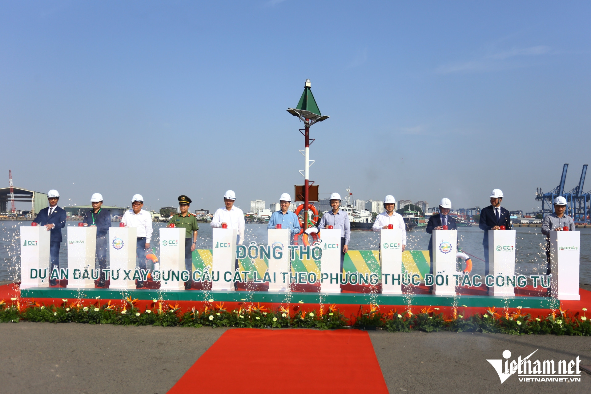 Các đại biểu bấm nút động thổ dự án cầu Cát Lái. Ảnh: Hoàng Anh