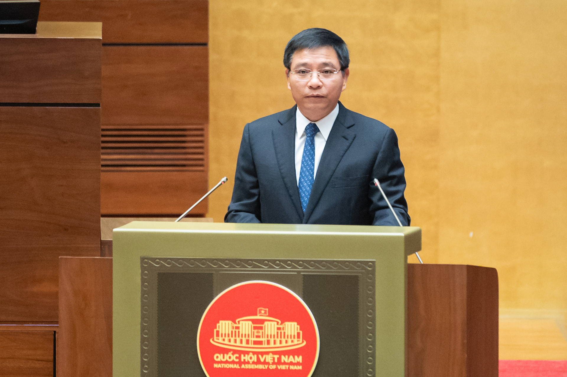 Bộ trưởng Tài chính Nguyễn Văn Thắng trình bày báo cáo giải trình, tiếp thu. Ảnh: Quốc hội