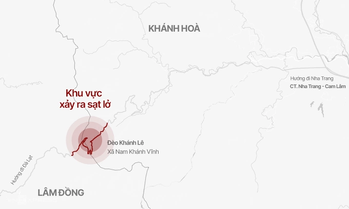 Gần 22h hôm qua, xe khách Phương Trang 34 chỗ biển số TP HCM chở 32 người, trong đó có hai tài xế, một phụ xe, chạy trên đèo Khánh Lê hướng Đà Lạt – Nha Trang để ra Quảng Ngãi. Đến khu vực Nam Khánh Vĩnh, đèo sạt lở, đất đá đổ xuống vùi lấp một phần xe.