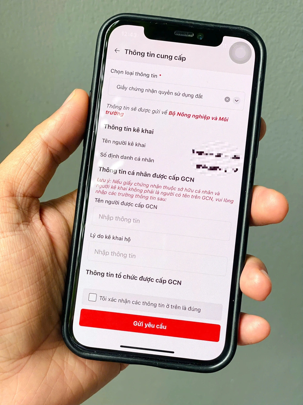 Hiện nay, quy trình đã được đơn giản hóa trên ứng dụng VNeID: Người dân chỉ cần gửi ảnh chụp sổ đỏ đang thế chấp tại ngân hàng và khai đầy đủ thông tin để xác thực. Trường hợp đã nộp hồ sơ trực tiếp cho xã, phường trước đó thì không cần kê khai lại trên ứng dụng.
